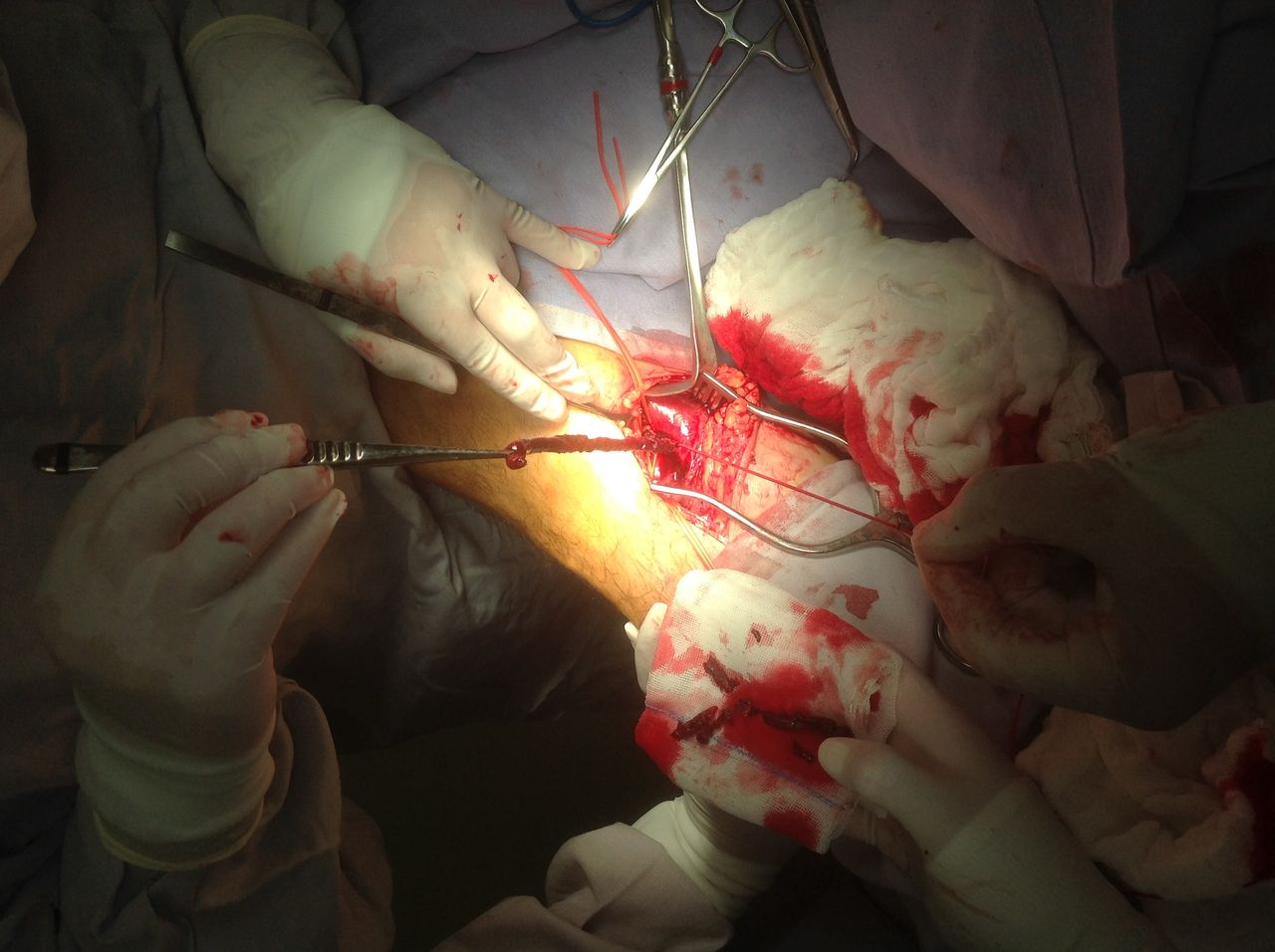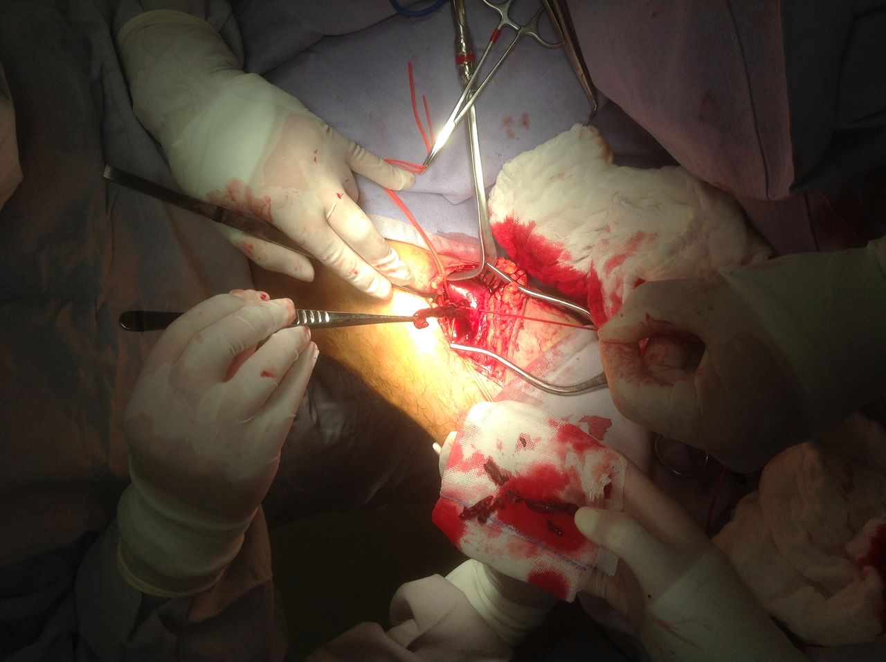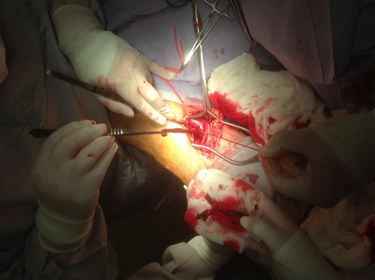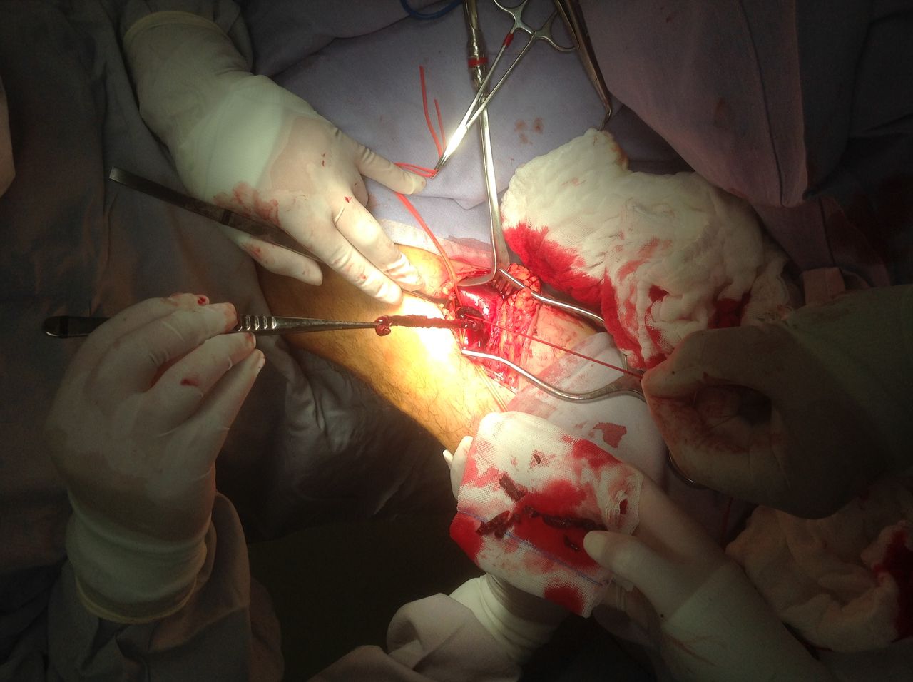 By-pass fémoro-poplíteo, primera porción con vena y/o prótesis